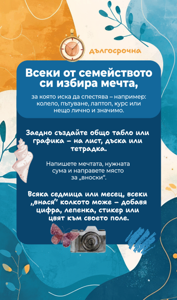 С помощта на наръчника родителите лесно включват децата в реални житейски дейности – пазаруване, планиране на разходи, създаване на касичка и избор кога да похарчат и кога да запазят.