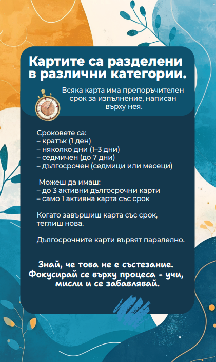 Всяка карта поставя детето в реална ситуация, в която то се учи да мисли критично, да избира мъдро и да действа уверено.